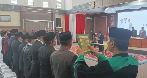 Usai prosesi pengambilan sumpah, para pejabat tersebut langsung melakukan penandatanganan pakta integritas sebagai bentuk komitmen dalam menjalankan tugas negara secara profesional dan transparan.