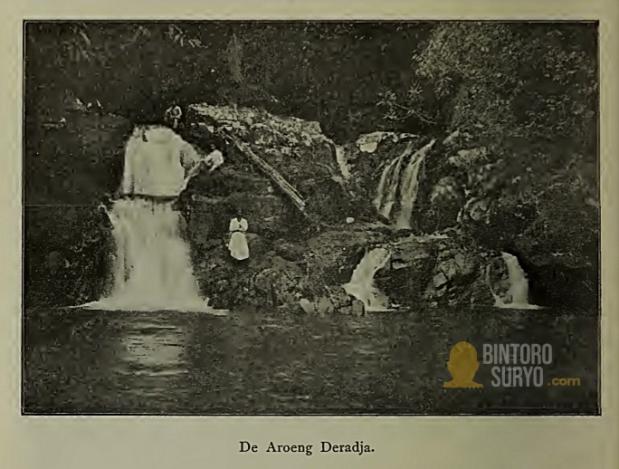 Keberadaan air terjun indah ini, paling tidak telah dipublikasikan sejak akhir abad 19. Dalam kunjungan Residen Riouw ke wilayah ini saat itu, A. L. Van Hasselt, ia menyebutnya dengan nama Air Terjun Deradja atau Aroeng Deradja. Nama yang diperolehnya dari keterangan penduduk setempat pada kunjungan tahun 1894.