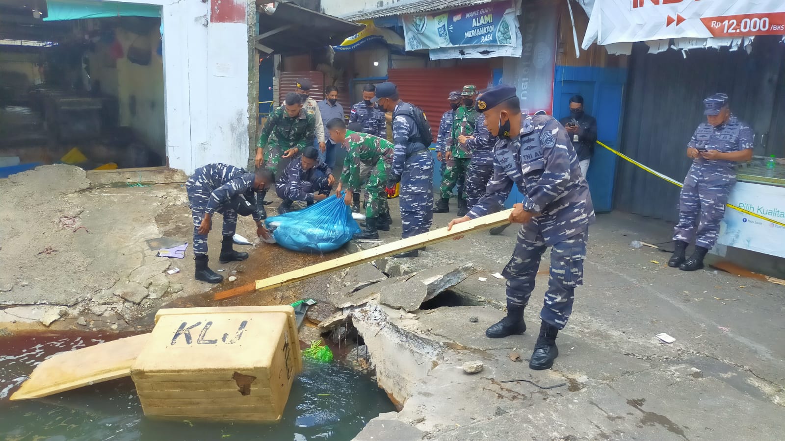 Di Lokasi kejadian juga telah dipasang garis polisi, sementara sejumlah warga dan pedagang tidak diperbolehkan melintas dan mendekati pelantar yang ambruk. Akses jalan menuju Pasar Ikan untuk sementara ditutup dan dialihkan ke jalur lain.