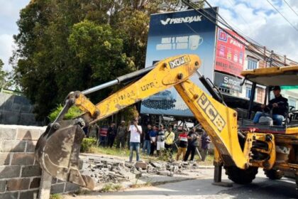 Petugas Satpol PP Tanjungpinang Bongkar Tembok Pembatas Jalan di Jl. DI Panjaitan