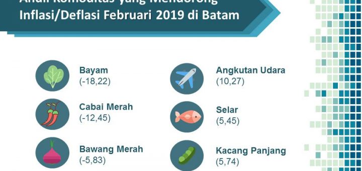 Berdasarkan data, andil terbesar penyumbang inflasi Kota Batam di bulan kedua 2019 ini berasal dari transportasi, komunikasi, dan jasa keuangan. Sektor ini mencatatkan inflasi sebesar 2,34 persen. Sementara bahan makanan justru mengalami deflasi 1,19 persen.
