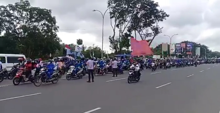 RIBUAN buruh di Kota Batam kembali menggelar aksi atau demo hari ini, Senin, 13 Desember 2021. Mereka kembali menolak nominal upah 2022 yang sudah ditetapkan dan meminta Gubernur Kepulauan Riau (Kepri) Ansar Ahmad mematuhi putusan PTUN Tanjungpinang dan PTUN Medan terkait UMK 2021.