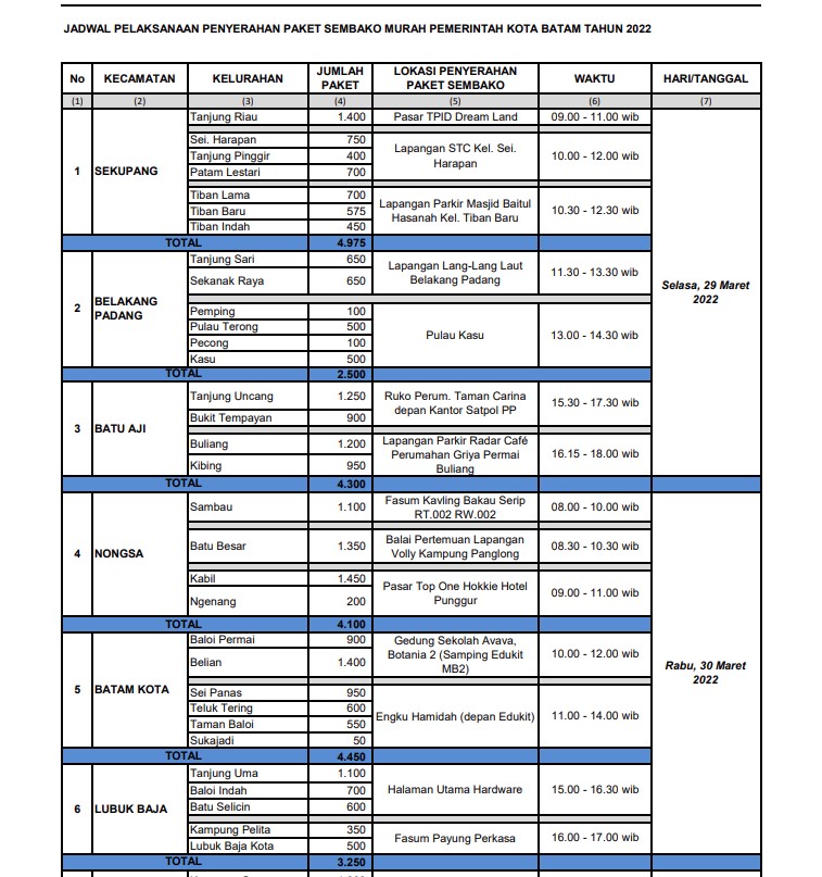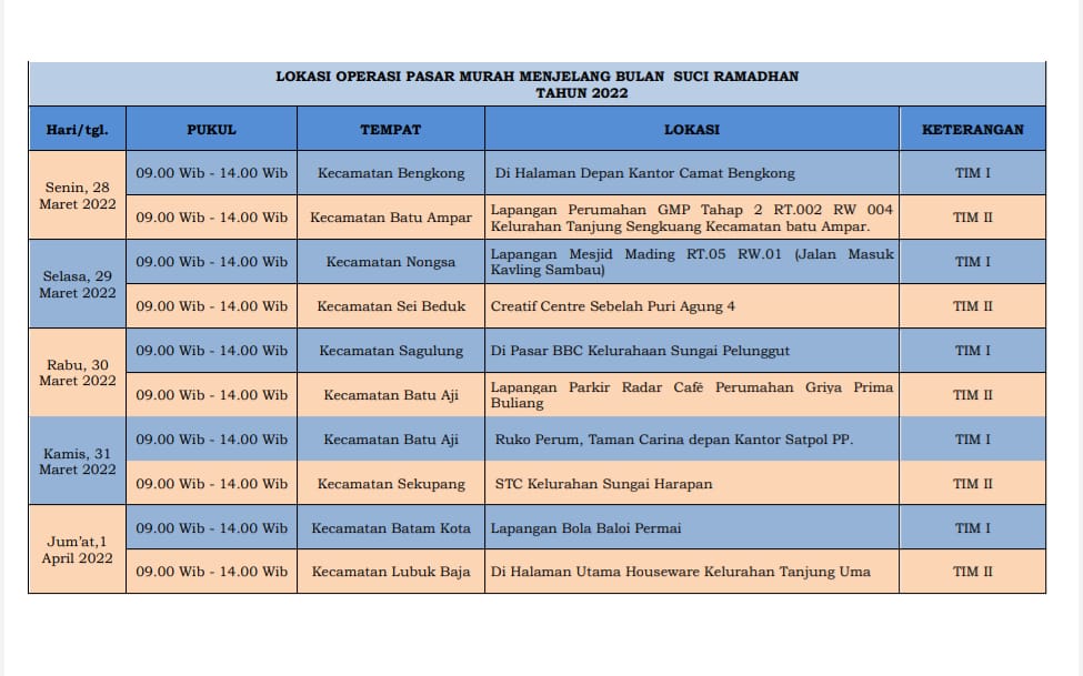 Kaitan jadwal pasar murah dan sembako murah, kota, pasar murah batam, ramadhan 2022, sembako murah batam