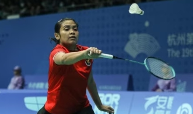 Gregoria Mariska Tunjung kalah dari wakil Jepang, Aya Ohori, dengan skor 10-21, 19-21 di babak perempat final bulu tangkis perorangan Asian Games 2023, Kamis (5/10/2023) WIB.
