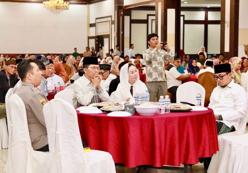 Wali Kota Batam, Amsakar Achmad, bersama Wakil Walikota Batam, Li Claudia Chanda, menghadiri kegiatan halal bihalal bersama Lembaga Kemasyarakatan Kelurahan (LKK), tokoh masyarakat, dan warga se-Kecamatan Bengkong di Ballroom Golden Prawn 933, Rabu (1/4/2026) malam. F/ Disediakan Gowest.id
