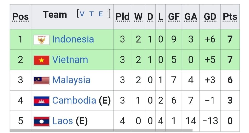 Skor kacamata, 0-0 di laga timnas Indonesia vs. Vietnam tetap bertahan hingga full time dan wasit meniup peluit panjangnya. Dengan hasil ini, timnas memimpin di klasemen sementara grup dengan nilai 7, sama dengan tim Vietnam yang berada di posisi kedua dengan nilai 7.