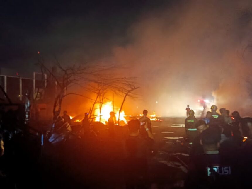 Seorang warga di lokasi kejadian, mengatakan api awalnya muncul di belakang sebuah kios martabak, yang terdapat palet-palet kayu.