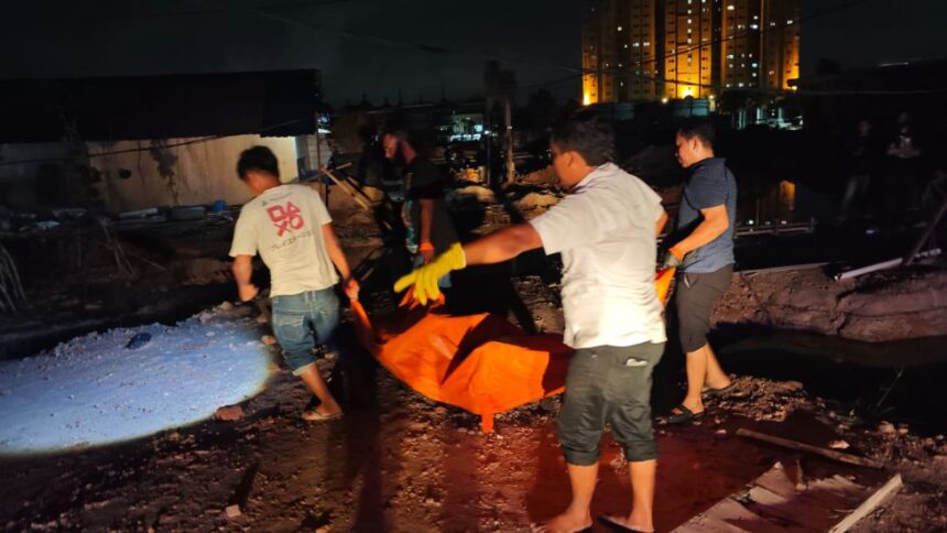 SESOSOK mayat pria dewasa ditemukan mengapung dalam keadaan tidak berpakaian dan telah mengeluarkan bau busuk di kolam bekas galian proyek kawasan Imperium, Kelurahan Taman Baloi, Kecamatan Batam Kota, Rabu (22/04/2026) sore.