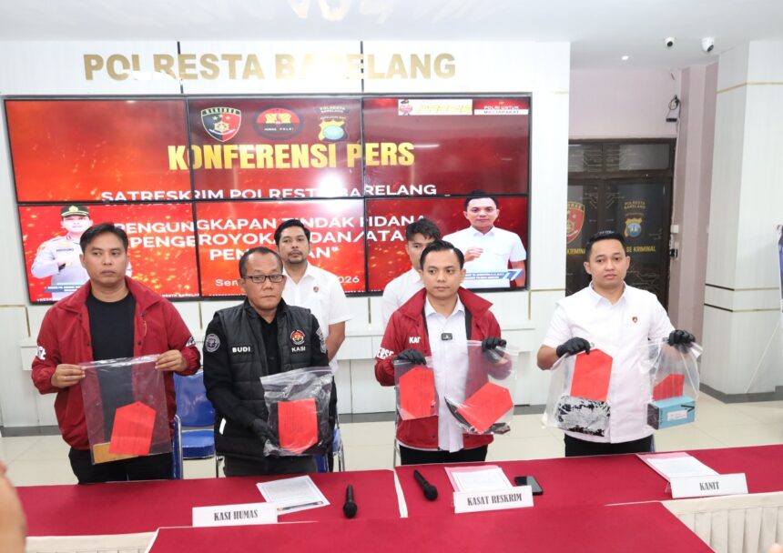 SATUAN Reserse dan Kriminal (Satreskrim) Polresta Bareng menetapakan 3 orang tersangka dalam tindak pidana kekerasan terhadap orang secara bersama-sama di muka umum dan/atau pencurian, yang terjadi di wilayah hukum Polsek Lubuk Baja, Batam.
