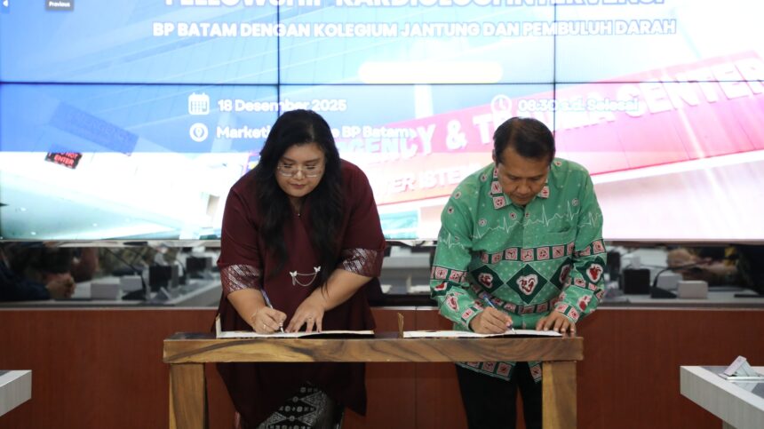 Pengukuhan tersebut terwujud setelah RSBP Batam melakukan penandatanganan Nota Kesepahaman (MoU) dengan Kolegium Jantung dan Pembuluh Darah pada Kamis (18/12/2025), yang dilaksanakan di Marketing Center BP Batam.