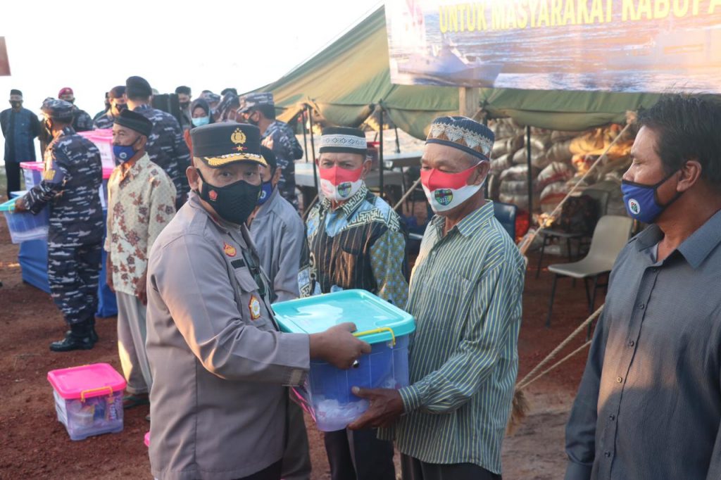 Kegiatan peninjauan dilanjutkan juga dengan Bakti Sosial yaitu membagikan sembako kepada masyarakat sekitar yang diberikan secara Simbolis oleh Kasal, Wakapolda, Koorsahli Kepala Staf Angkatan Laut, Asrena Kepala Staf Angkatan Laut dan Wakil Bupati Lingga.