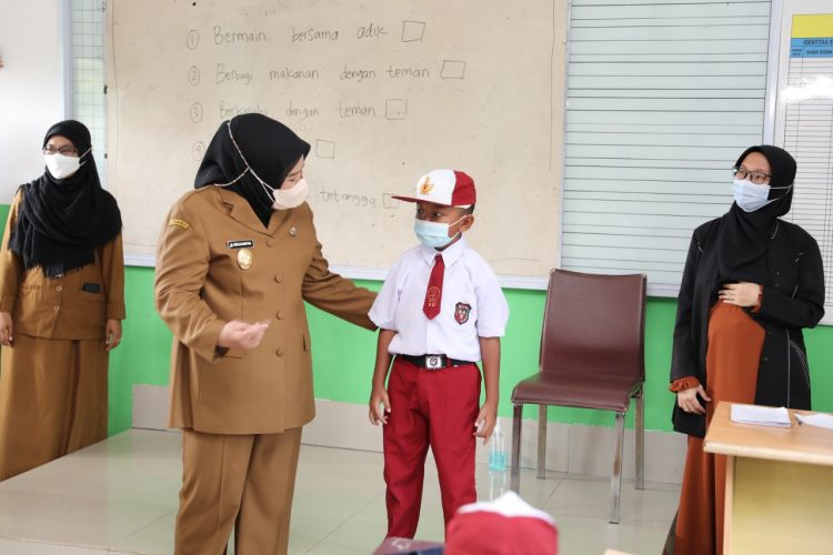 Ketua PKK Kota Batam ini malah langsung meninjau SD di Tanjungpiayu saat PTM dimulai.