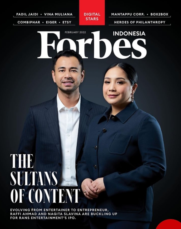 “Termasuk kisah utama kami, Raffi Ahmad dan Nagita Slavina, yang bertransformasi dari selebriti menjadi pengusaha lewat perusahaan mereka, RANS Entertainment,” tulis Forbes Indonesia dalam unggahan mereka.